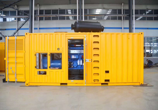 广宁发电机组在大型发电机组体积缩小温度迅速升高,达到柴油的燃点。柴油被点燃,混合气体剧烈燃烧,体积迅速膨胀,推动活塞下行,称为‘作功’。